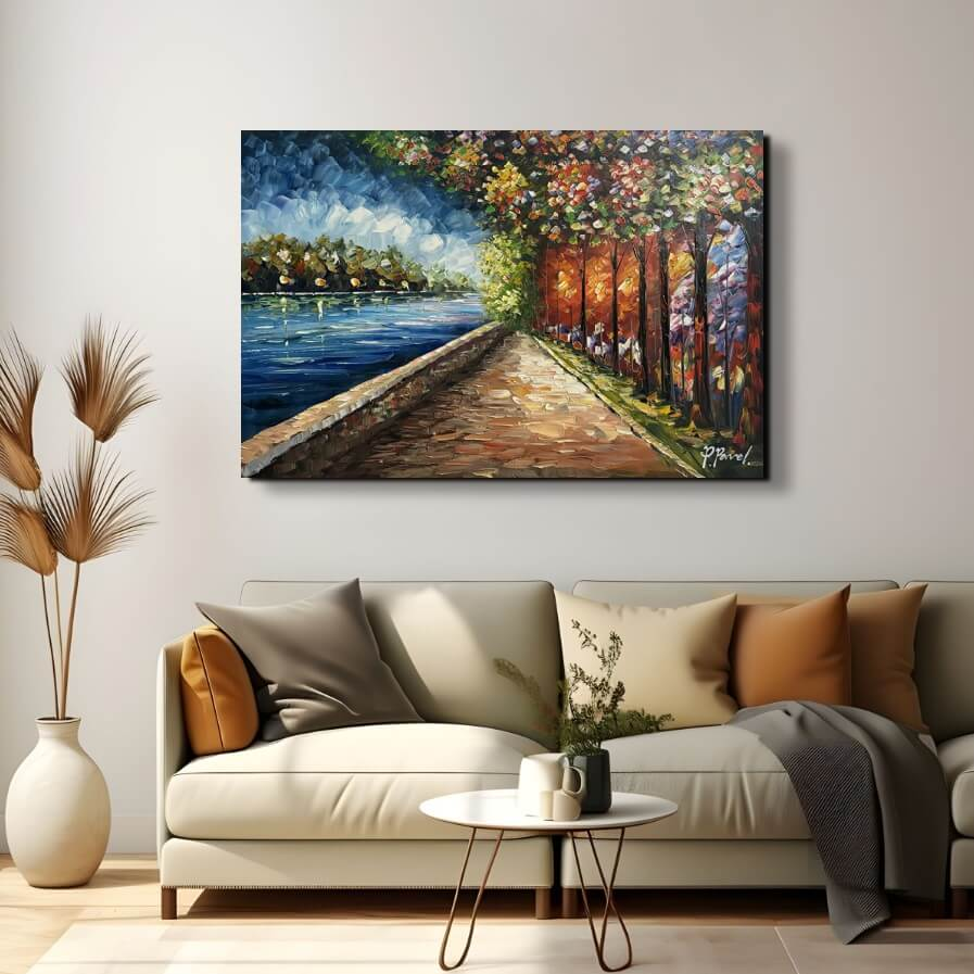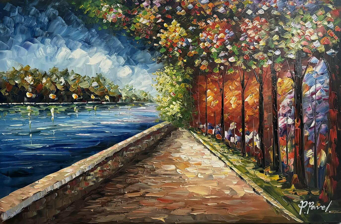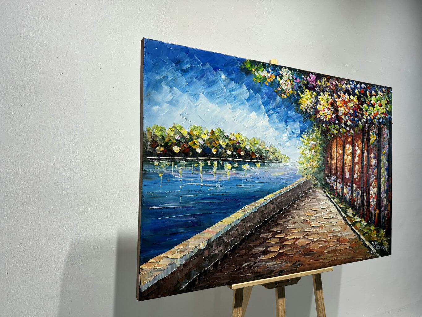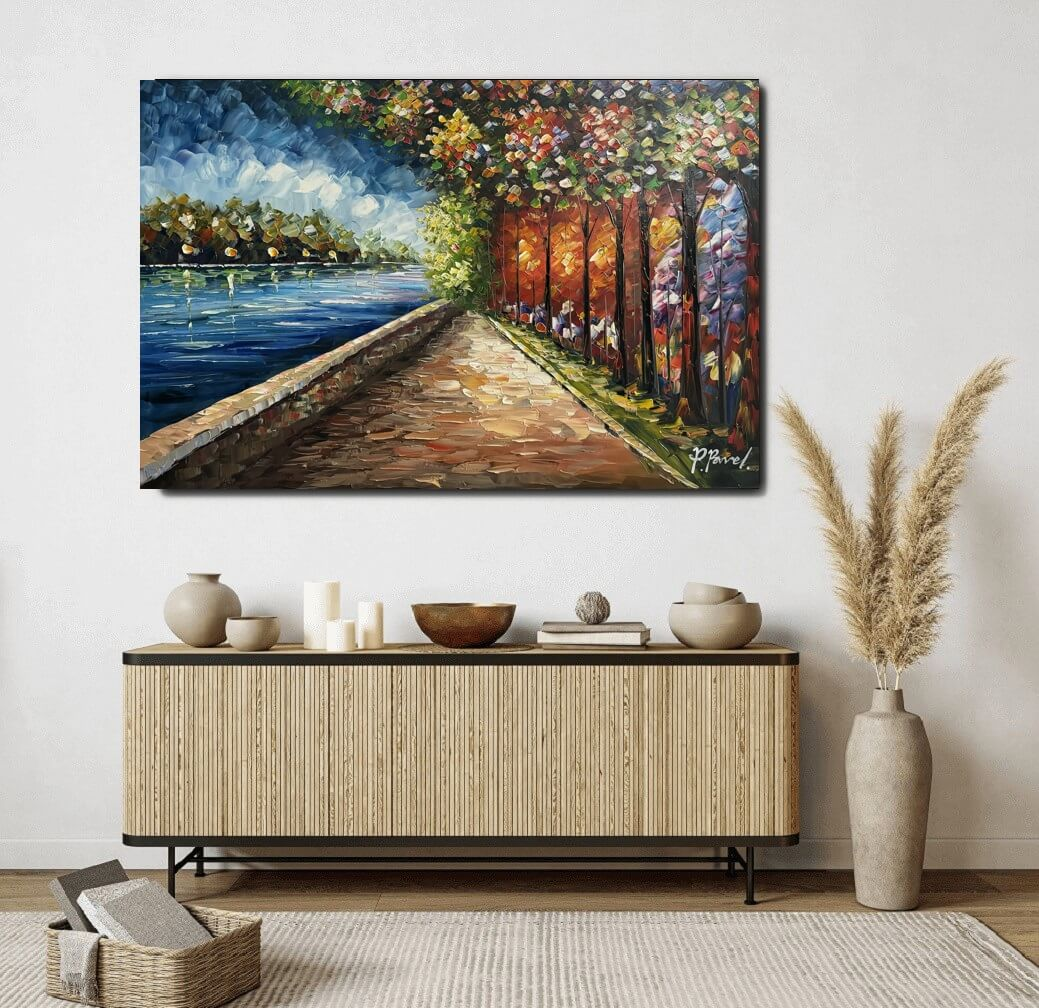 Toutes les peintures en vente ici chez Mynewart.fr sont des œuvres peintes à l’huile et à la main. La peinture à l"huile est considérée comme la plus classique. C’est avec l"huile qu"on obtient les couleurs les plus profondes. La livraison est assurée gratuitement par GLS. Vous pouvez suivre votre colis à tout moment par Track & Trace. L’œuvre est expédiée, soigneusement protégée et assurée. Elle est montée sur un cadre d’environ 3,3 cm d’épaisseur et prête à être accrochée au mur. Il suffit de planter un ou deux clous dans le mur.