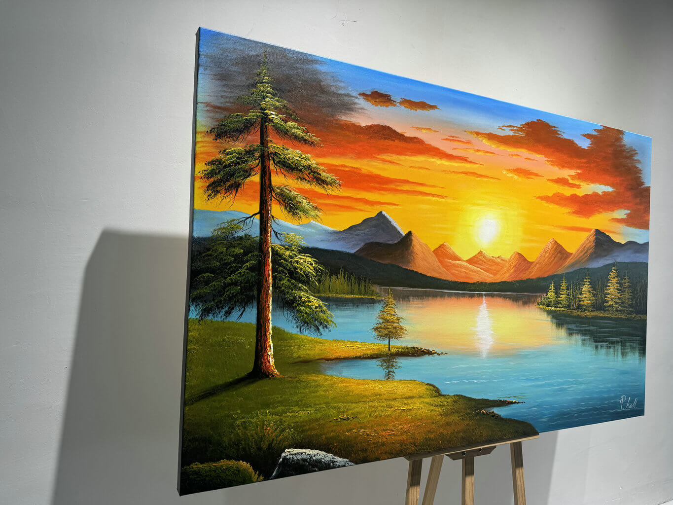 Toutes les peintures en vente ici chez Mynewart.fr sont des œuvres peintes à l’huile et à la main. La peinture à l"huile est considérée comme la plus classique. C’est avec l"huile qu"on obtient les couleurs les plus profondes. La livraison est assurée gratuitement par GLS. Vous pouvez suivre votre colis à tout moment par Track & Trace. L’œuvre est expédiée, soigneusement protégée et assurée. Elle est montée sur un cadre d’environ 3,3 cm d’épaisseur et prête à être accrochée au mur. Il suffit de planter un ou deux clous dans le mur.