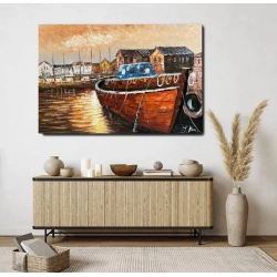 Toutes les peintures en vente ici chez Mynewart.fr sont des œuvres peintes à l’huile et à la main. La peinture à l"huile est considérée comme la plus classique. C’est avec l"huile qu"on obtient les couleurs les plus profondes. La livraison est assurée gratuitement par GLS. Vous pouvez suivre votre colis à tout moment par Track & Trace. L’œuvre est expédiée, soigneusement protégée et assurée. Elle est montée sur un cadre d’environ 3,3 cm d’épaisseur et prête à être accrochée au mur. Il suffit de planter un ou deux clous dans le mur.