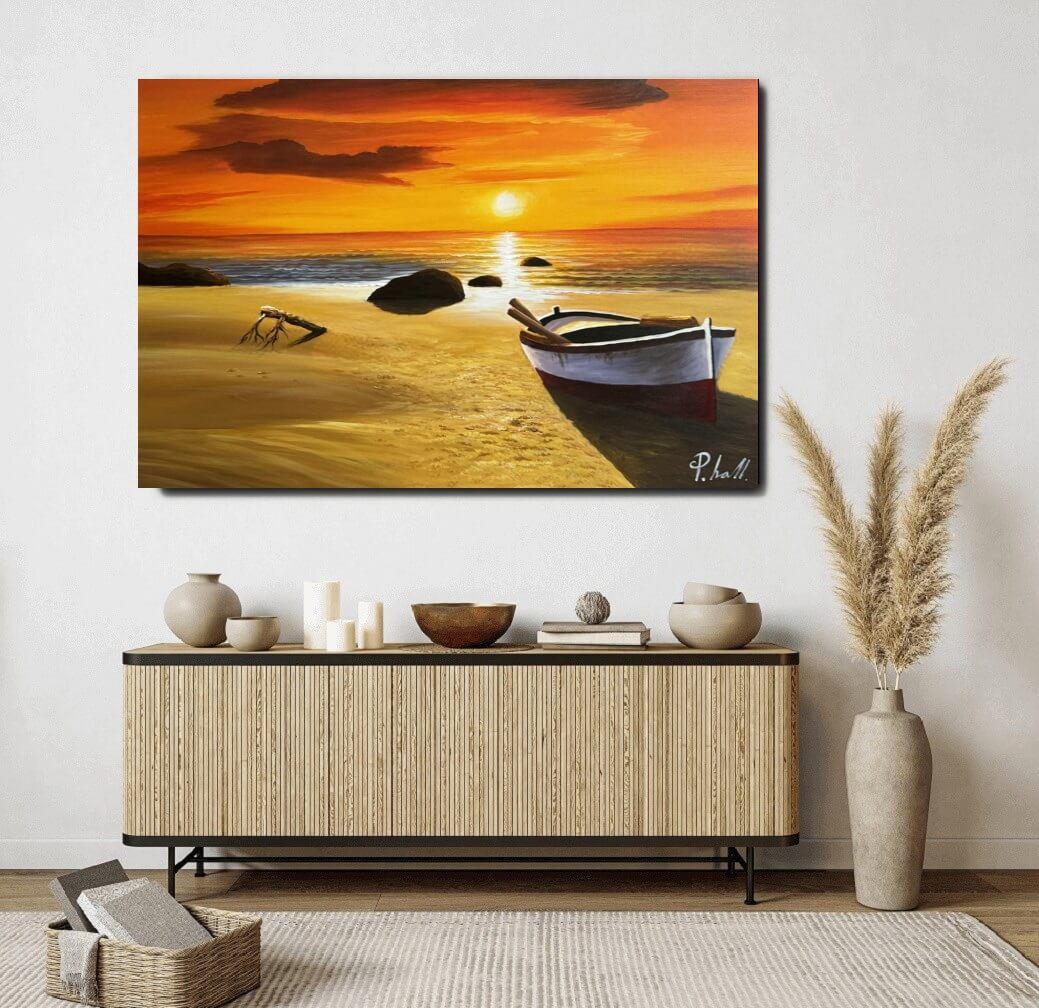 Toutes les peintures en vente ici chez Mynewart.fr sont des œuvres peintes à l’huile et à la main. La peinture à l"huile est considérée comme la plus classique. C’est avec l"huile qu"on obtient les couleurs les plus profondes. La livraison est assurée gratuitement par GLS. Vous pouvez suivre votre colis à tout moment par Track & Trace. L’œuvre est expédiée, soigneusement protégée et assurée. Elle est montée sur un cadre d’environ 3,3 cm d’épaisseur et prête à être accrochée au mur. Il suffit de planter un ou deux clous dans le mur.