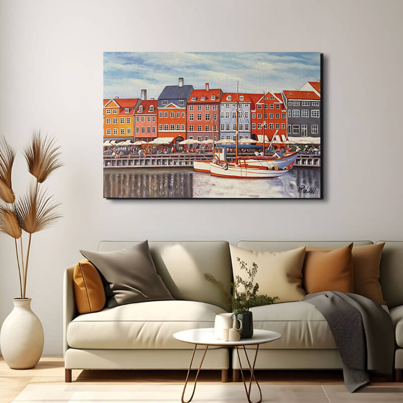 Toutes les peintures en vente ici chez Mynewart.fr sont des œuvres peintes à l’huile et à la main. La peinture à l"huile est considérée comme la plus classique. C’est avec l"huile qu"on obtient les couleurs les plus profondes. La livraison est assurée gratuitement par GLS. Vous pouvez suivre votre colis à tout moment par Track & Trace. L’œuvre est expédiée, soigneusement protégée et assurée. Elle est montée sur un cadre d’environ 3,3 cm d’épaisseur et prête à être accrochée au mur. Il suffit de planter un ou deux clous dans le mur.