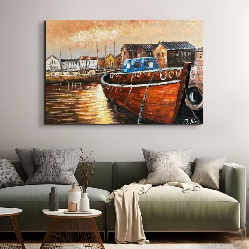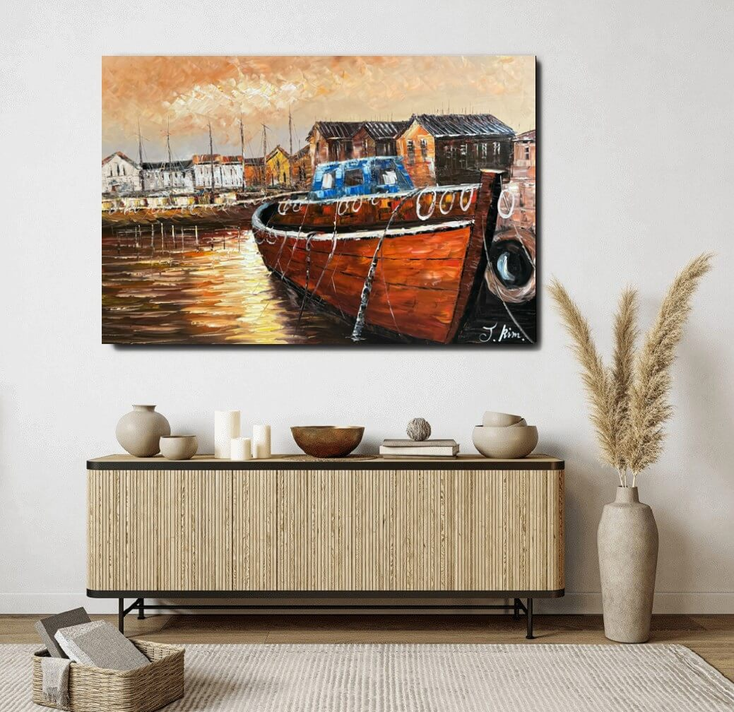 Toutes les peintures en vente ici chez Mynewart.fr sont des œuvres peintes à l’huile et à la main. La peinture à l"huile est considérée comme la plus classique. C’est avec l"huile qu"on obtient les couleurs les plus profondes. La livraison est assurée gratuitement par GLS. Vous pouvez suivre votre colis à tout moment par Track & Trace. L’œuvre est expédiée, soigneusement protégée et assurée. Elle est montée sur un cadre d’environ 3,3 cm d’épaisseur et prête à être accrochée au mur. Il suffit de planter un ou deux clous dans le mur.