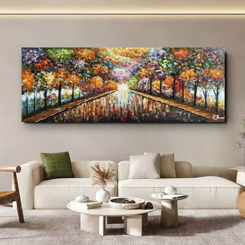 Toutes les peintures en vente ici chez Mynewart.fr sont des œuvres peintes à l’huile et à la main. La peinture à l"huile est considérée comme la plus classique. C’est avec l"huile qu"on obtient les couleurs les plus profondes. La livraison est assurée gratuitement par GLS. Vous pouvez suivre votre colis à tout moment par Track & Trace. L’œuvre est expédiée, soigneusement protégée et assurée. Elle est montée sur un cadre d’environ 3,3 cm d’épaisseur et prête à être accrochée au mur. Il suffit de planter un ou deux clous dans le mur.