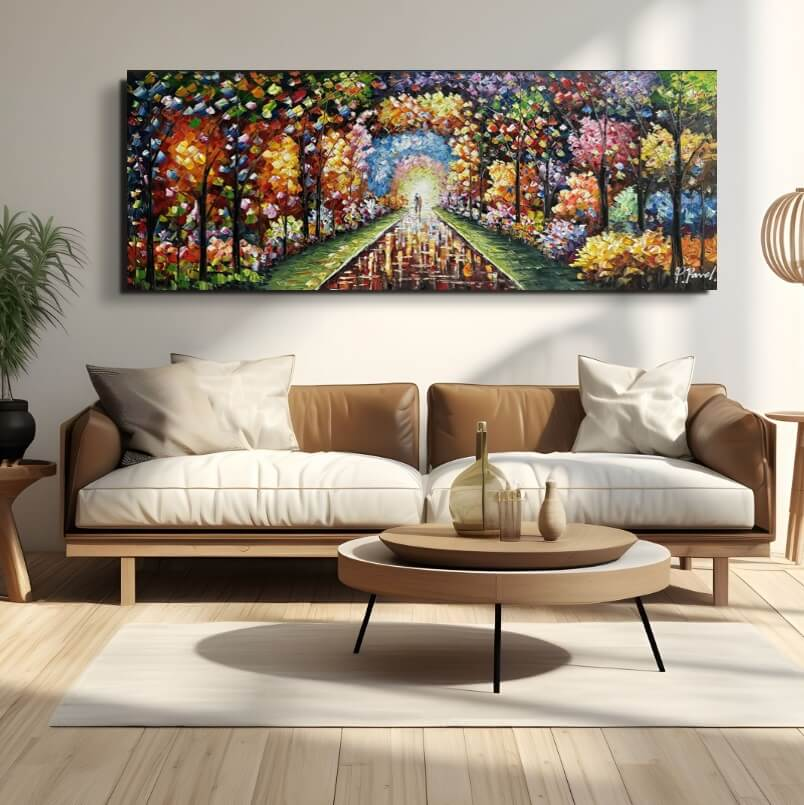 Toutes les peintures en vente ici chez Mynewart.fr sont des œuvres peintes à l’huile et à la main. La peinture à l"huile est considérée comme la plus classique. C’est avec l"huile qu"on obtient les couleurs les plus profondes. La livraison est assurée gratuitement par GLS. Vous pouvez suivre votre colis à tout moment par Track & Trace. L’œuvre est expédiée, soigneusement protégée et assurée. Elle est montée sur un cadre d’environ 3,3 cm d’épaisseur et prête à être accrochée au mur. Il suffit de planter un ou deux clous dans le mur.