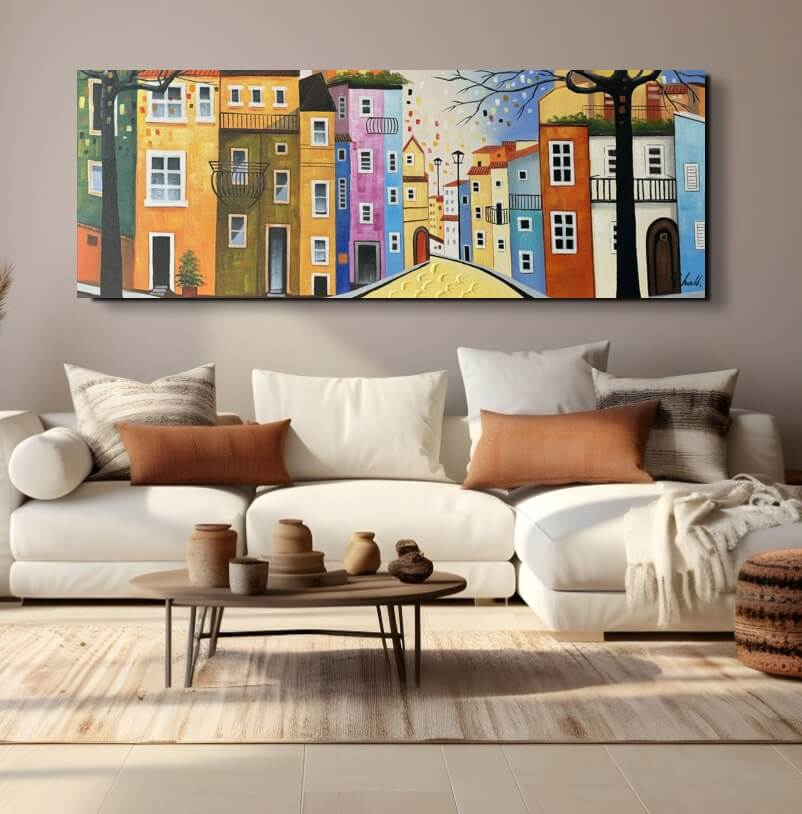 Toutes les peintures en vente ici chez Mynewart.fr sont des œuvres peintes à l’huile et à la main. La peinture à l"huile est considérée comme la plus classique. C’est avec l"huile qu"on obtient les couleurs les plus profondes. La livraison est assurée gratuitement par GLS. Vous pouvez suivre votre colis à tout moment par Track & Trace. L’œuvre est expédiée, soigneusement protégée et assurée. Elle est montée sur un cadre d’environ 3,3 cm d’épaisseur et prête à être accrochée au mur. Il suffit de planter un ou deux clous dans le mur.